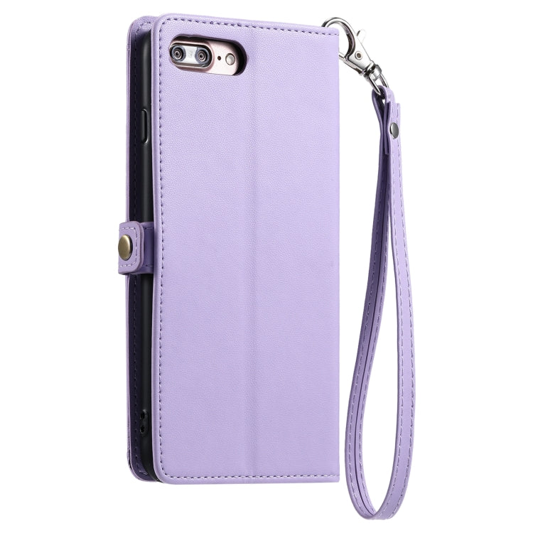 Funda de Cuero para iPhone 8 Plus/7 Plus Ranura Múltiples Tarjetas Cordón (Morado)