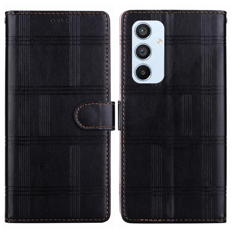Funda de cuero con relieve a cuadros para Samsung Galaxy A54 5G (negra)