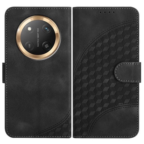 Funda de Cuero con Relieve Cabeza de Elefante para Honor X9C Global con Cordón (Negro)