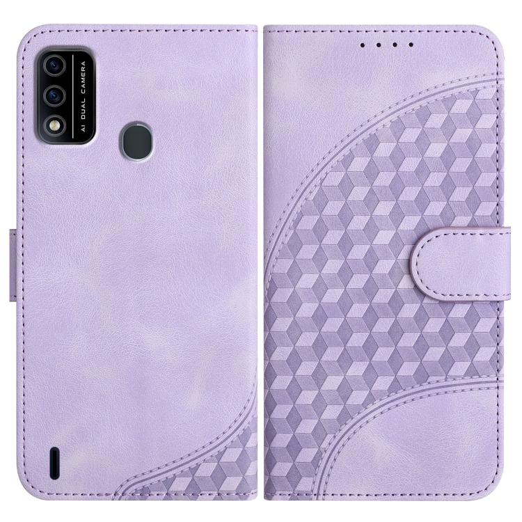 Funda de Cuero con Relieve Cabeza de Elefante para Itel A48 con Cordón (Morado Claro)