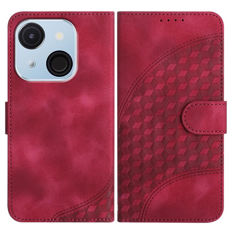 Funda de Cuero con Relieve de Cabeza de Elefante para Itel A50C con Cordón (Rosa Rojo)