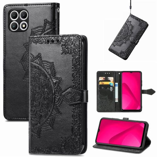 Funda de Cuero con Relieve Flor de Mandala para Teléfono T-Mobile Revvl 7 5G (Negro)