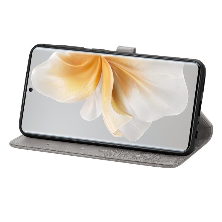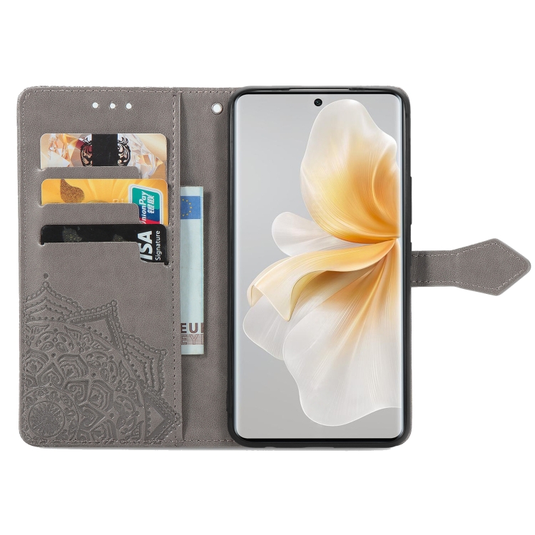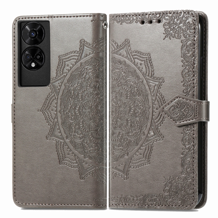 Funda de Cuero con Relieve Flor de Mandala para Teléfono TCL 50 5G (Gris)
