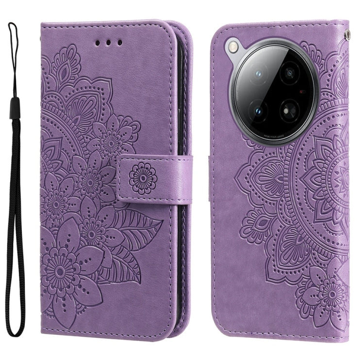 Funda de Cuero con Relieve de Flores de Siete Pétalos para Infinix Zero 40 4G/5G (Morado Claro)