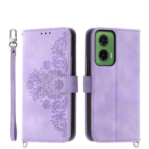 Funda de Cuero con Relieve de Flores para Motorola Moto G75 5G (Morado)