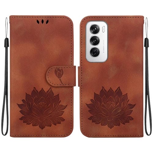 Funda de Cuero con Relieve de Loto para Oppo Reno12 5G Global (Marrón)