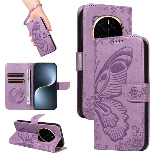 Funda de Cuero con Relieve de Mariposa para Honor Magic7 (Morado)