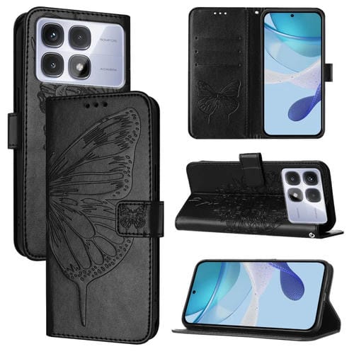 Funda de Cuero con Relieve de Mariposa para Redmi K70 Ultra 5G (Negra)