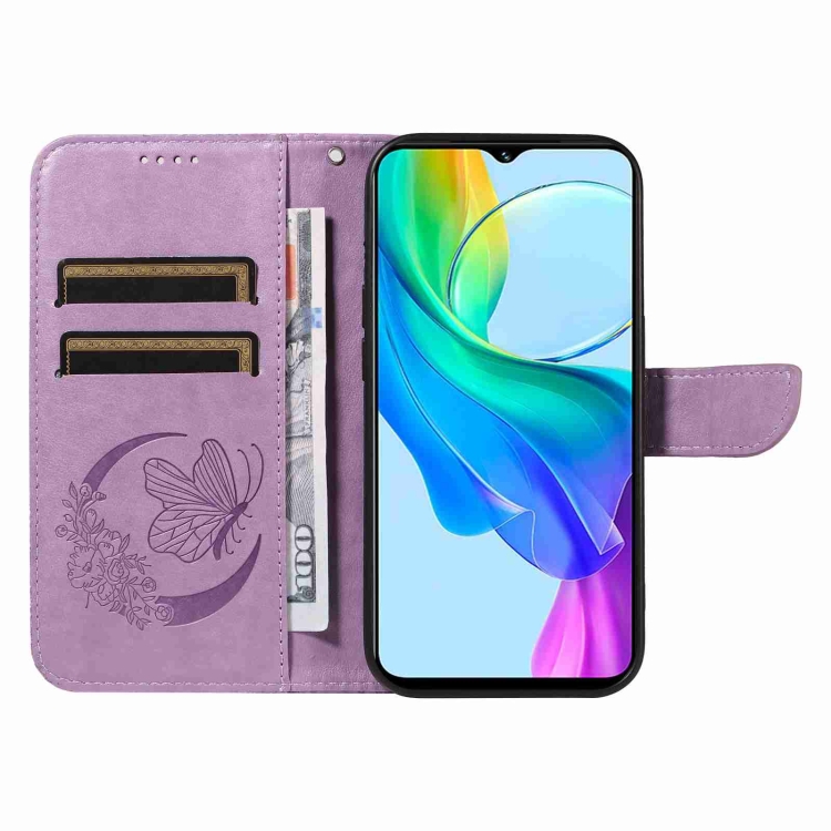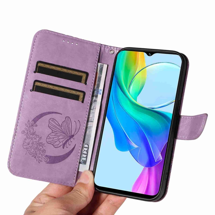 Funda de Cuero con Relieve de Mariposa para Vivo Y03 4G (Morado)