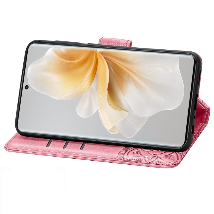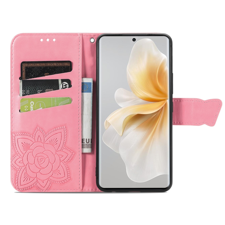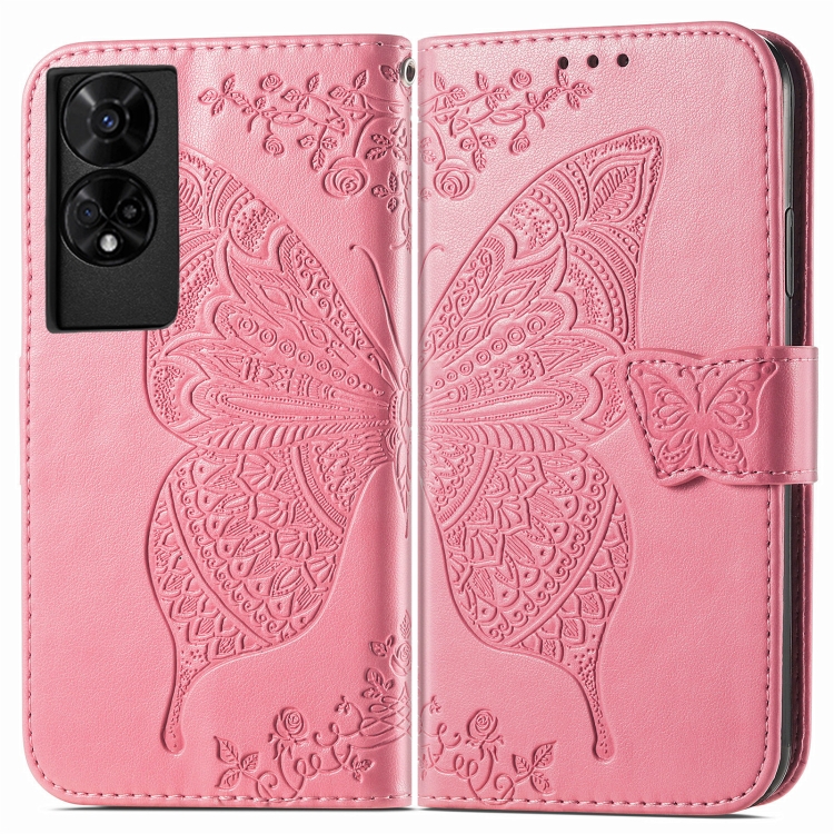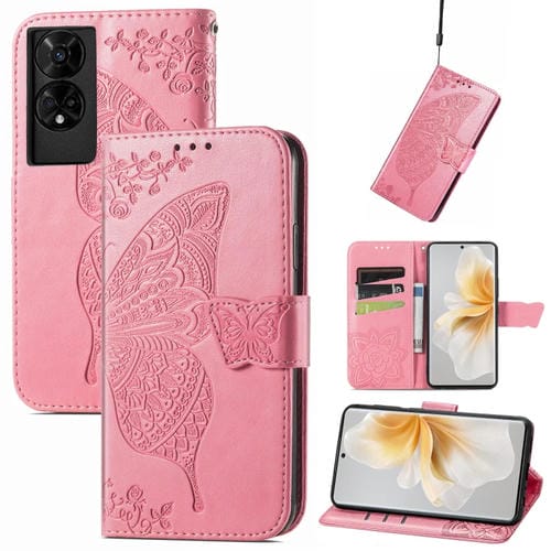 Funda de Cuero para TCL 50 5G con Relieve de Mariposa y Flor (Rosa)
