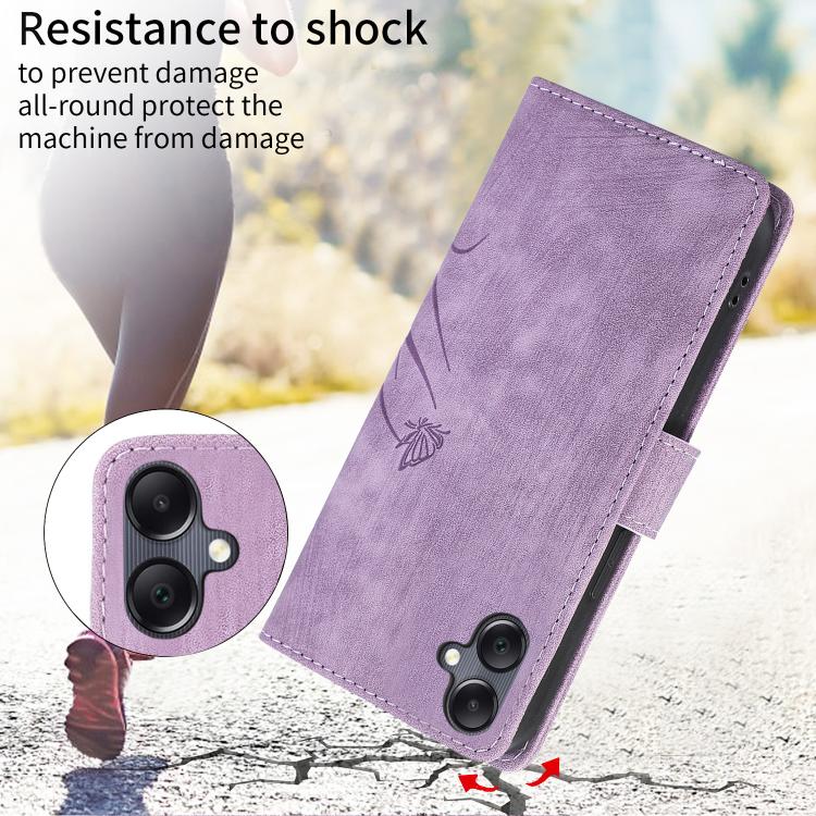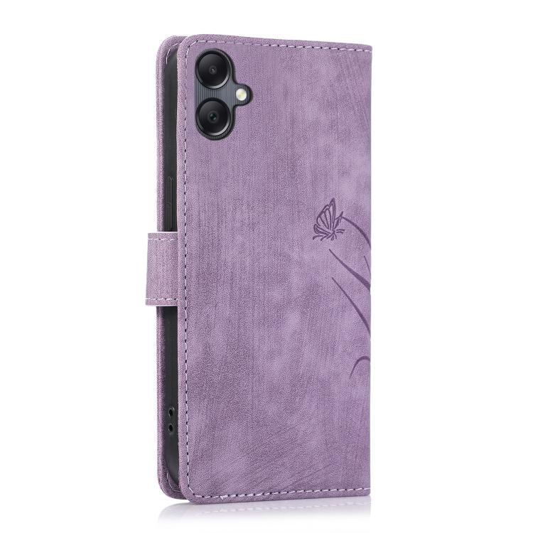 Funda de Cuero Samsung Galaxy A06 Relieve Mariposa y Orquídea (Morado)