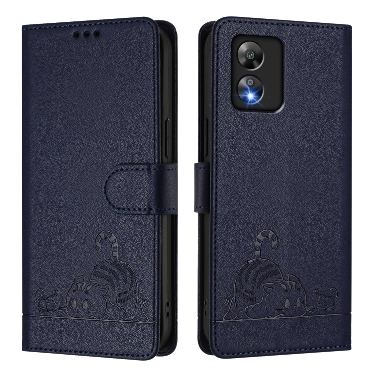 Funda de Cuero con Relieve Rfid para Teléfono Boost Mobile Celero 5G Sc Cat Rat con Cordón (Azul)