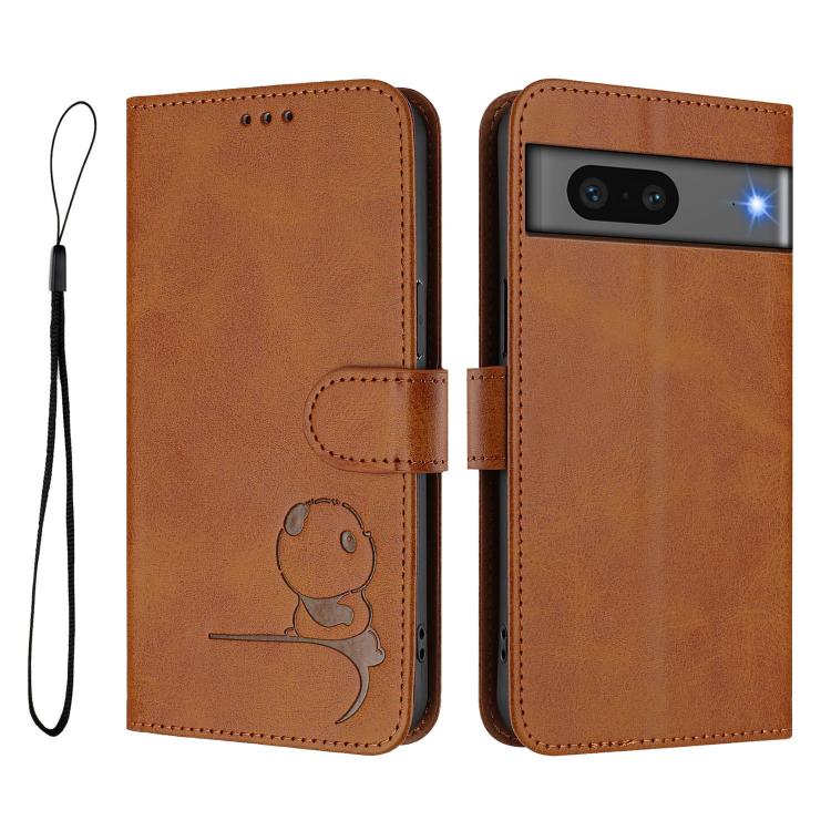 Funda de cuero con relieve RFID y cordón para Google Pixel 7 (marrón)