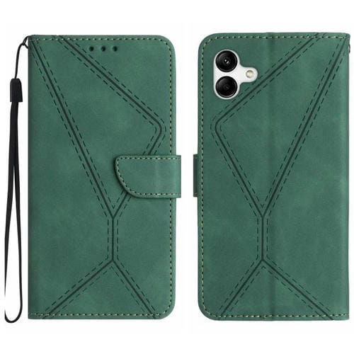 Funda de Cuero Samsung Galaxy A06 5G con Relieve y Costuras (Verde)