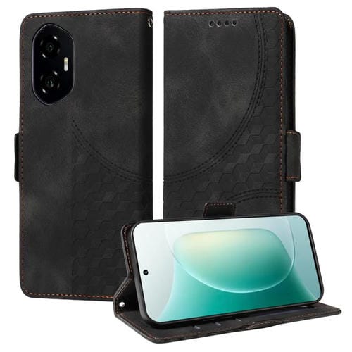 Funda de Cuero con Rombos y Estrellas en Relieve para Teléfono For Honor 300 (Negra)