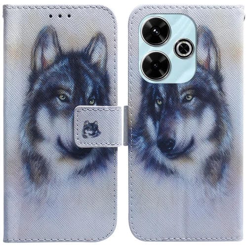 Funda de Cuero con Tapa con Dibujo Colorido para Xiaomi Redmi 13 4G (Lobo Blanco)