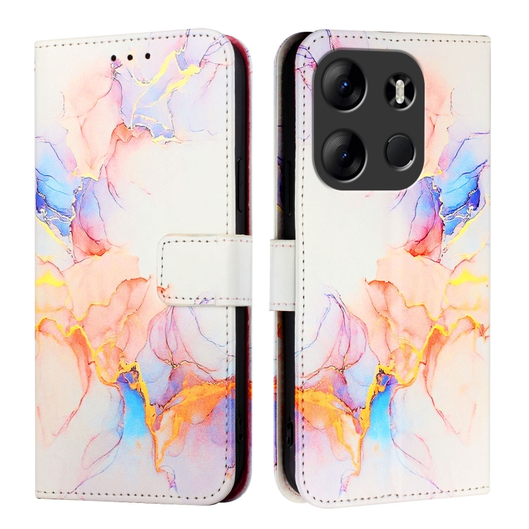 Funda de Cuero con Tapa para Tecno Pop 7/Pop 7 Pro Pt003 con Diseño Mármol (Galaxy Marble White)