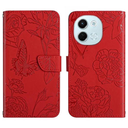 Funda de Cuero con Tapa con Relieve de Mariposa para Tecno Spark 30 5G (Rojo)