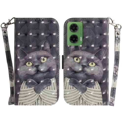 Funda de Cuero con Tapa 3D para Motorola Moto G35 (Hug Cat)