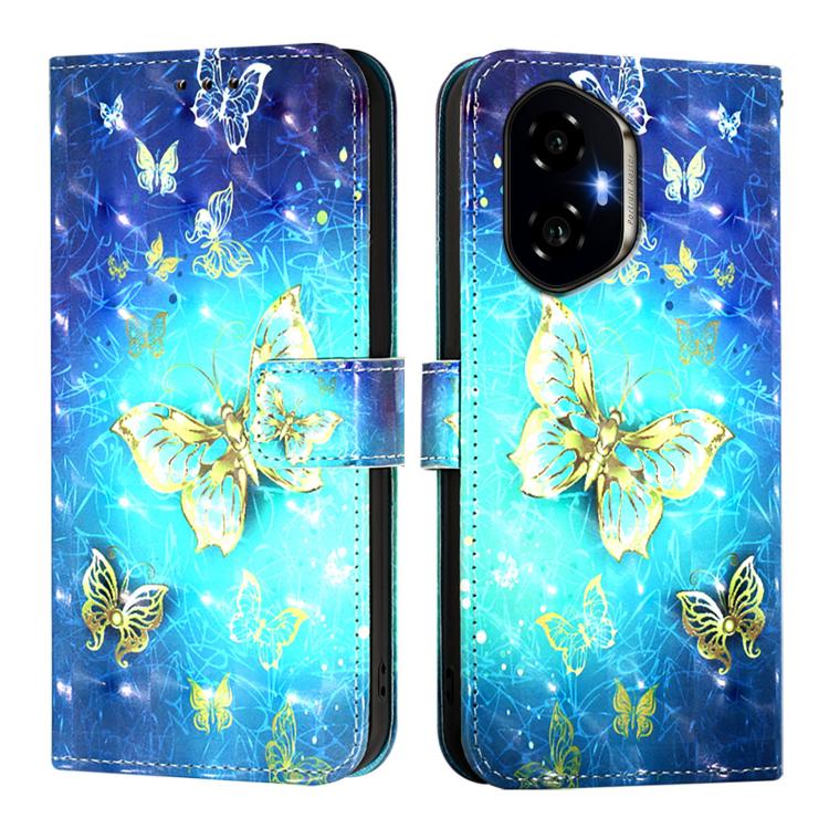 Funda de Cuero con Tapa Horizontal y Pintura 3D para Honor 300 (Mariposa Dorada)