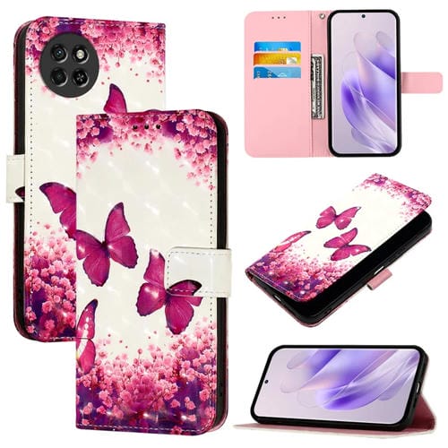 Funda de Cuero con Tapa Horizontal Pintura 3D para Itel S23 (Mariposa Rosa)