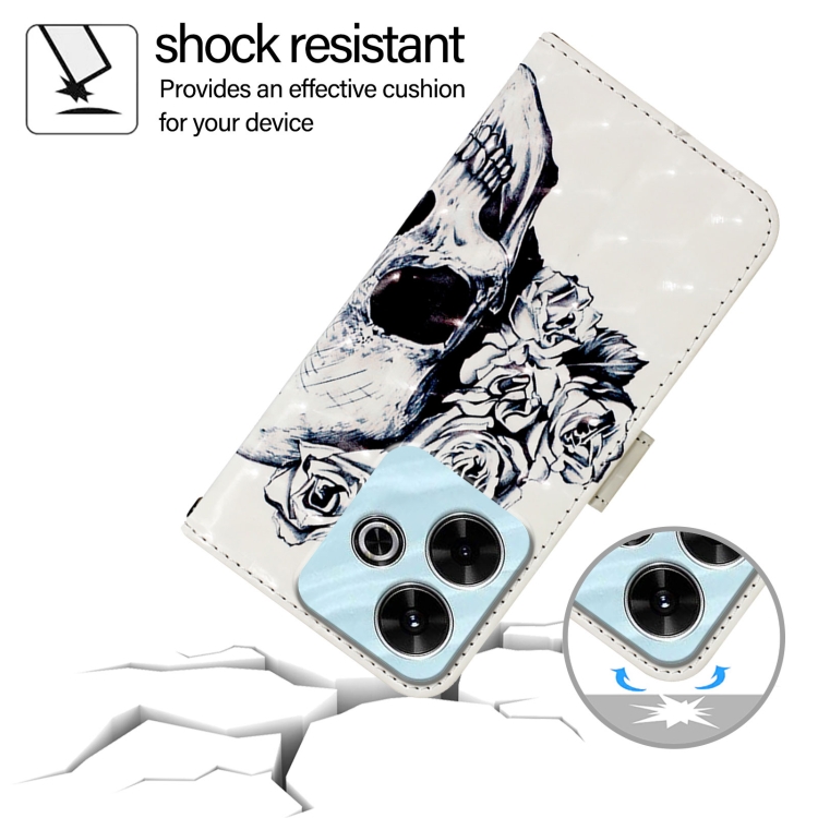 Funda de Cuero con Tapa Horizontal con Pintura 3D para Xiaomi Redmi 13 4G (Calavera)
