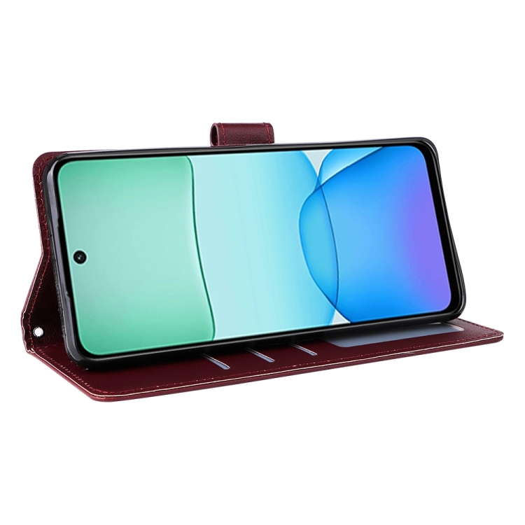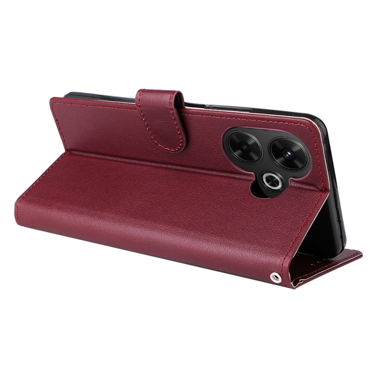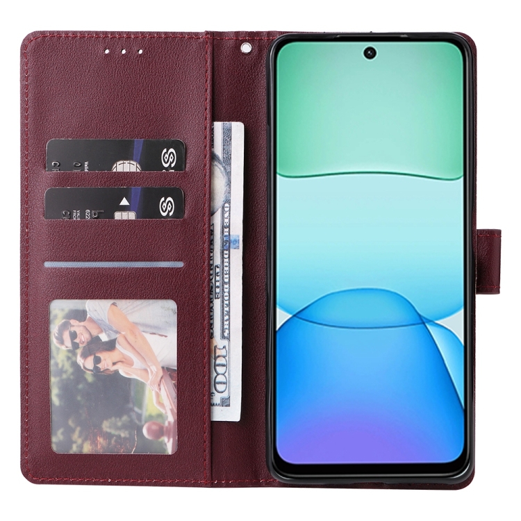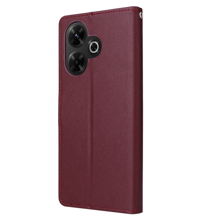 Funda de Cuero con Tapa Horizontal Multifuncional para Teléfono Xiaomi Redmi 13 4G con Ranura para Tres Tarjetas (Rojo Vino)