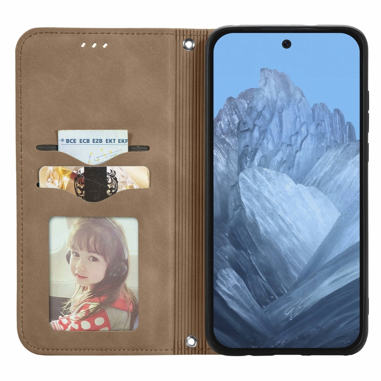 Funda de Cuero con Tapa Magnética para Google Pixel 9 Pro XL (Marrón)