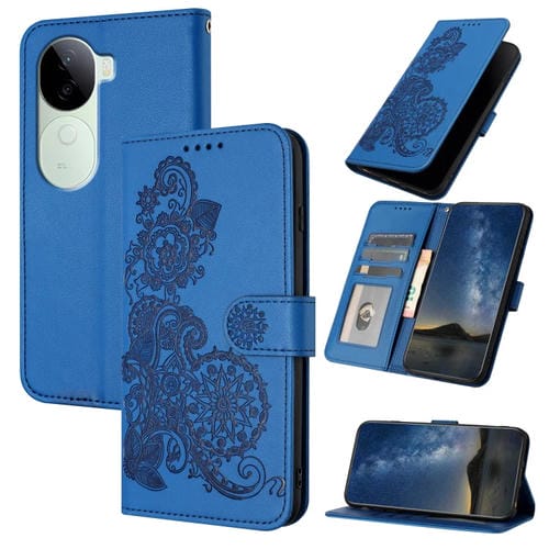 Funda de Cuero con Tapa para Teléfono con Relieve de Flor de Datura de la India para Vivo Iqoo Z9S/V40E (Azul)