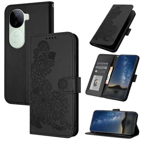 Funda de Cuero con Tapa para Teléfono con Relieve de Flor de Datura de la India para Vivo Iqoo Z9S/V40E (Negra)