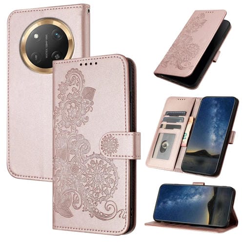 Funda de Cuero con Tapa para Honor X9C Global con Relieve de Flor de Datura (Oro Rosa)