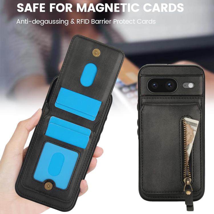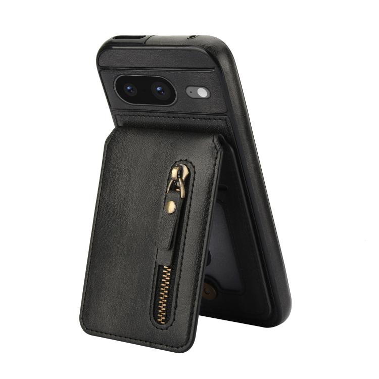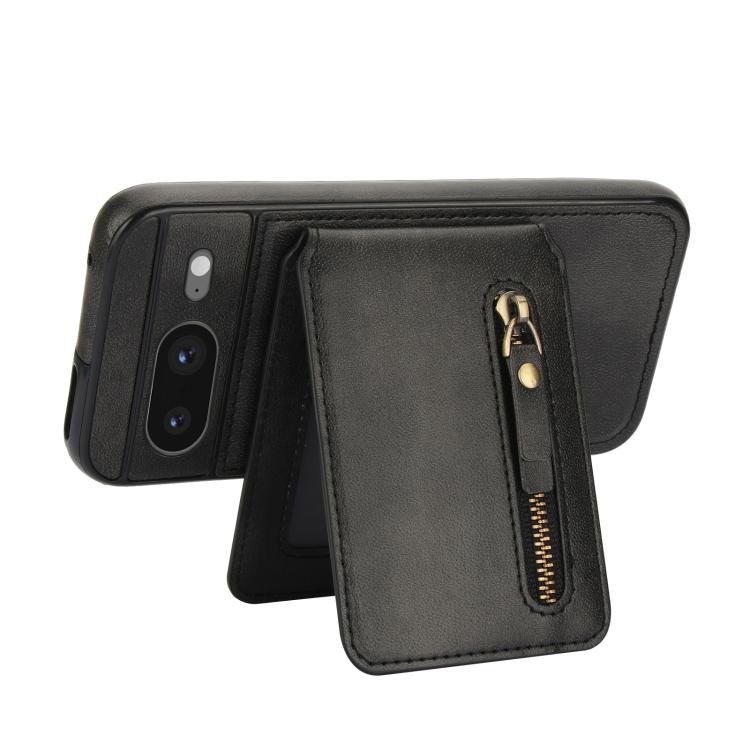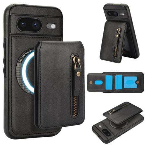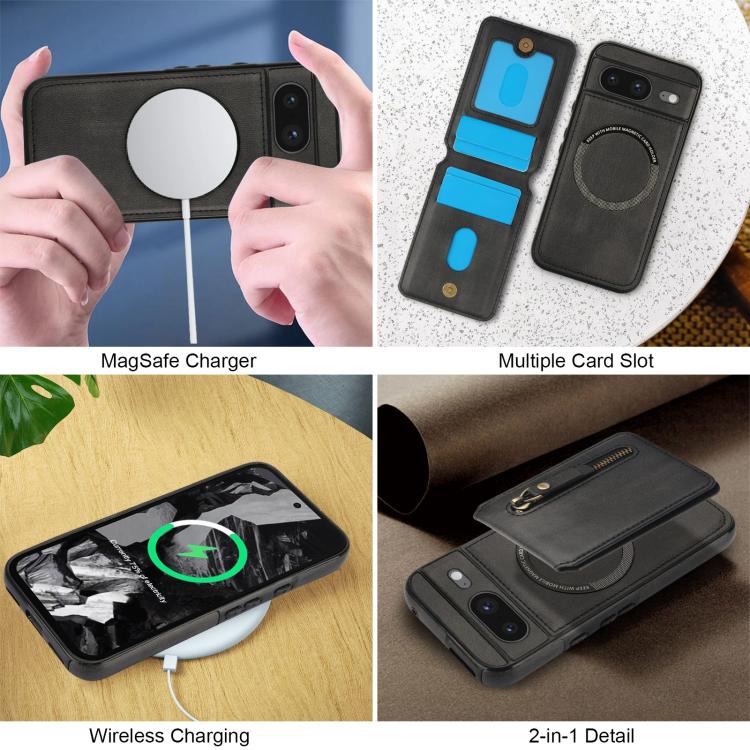 Funda de Cuero con Tapa Trasera Magsafe Dividida y Cremallera para Google Pixel 8 (Negro)