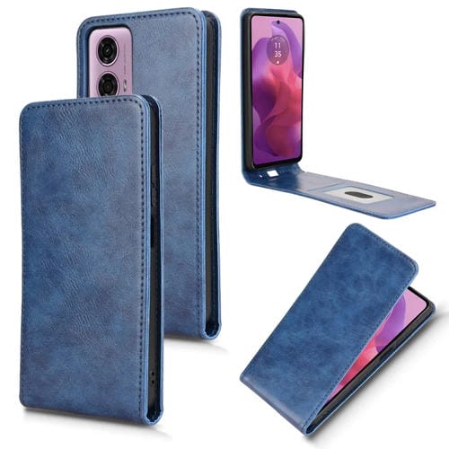 Funda de Cuero con Tapa Vertical Magnética para Motorola Moto G04/G24/G24 Power (Azul)