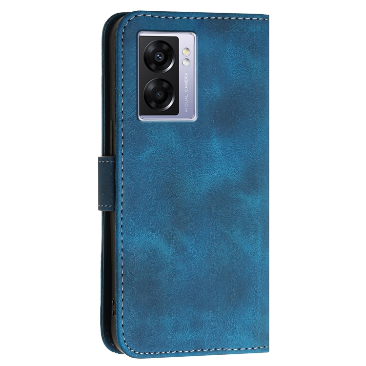 Funda de Cuero con Tapa y Cordón para Oppo A57E 4G Global Yx0080 con Diseño En Relieve de Mariposa y Cuadrícula (Azul Oscuro)
