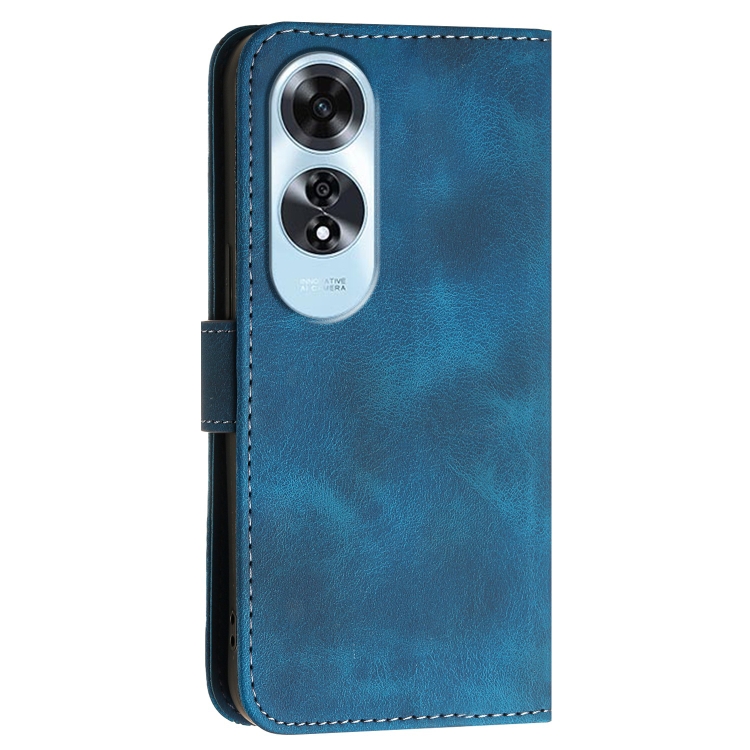 Funda de Cuero con Tapa y Cordón para Oppo A60 4G Yx0080 con Diseño En Relieve de Mariposa y Cuadrícula (Azul Oscuro)