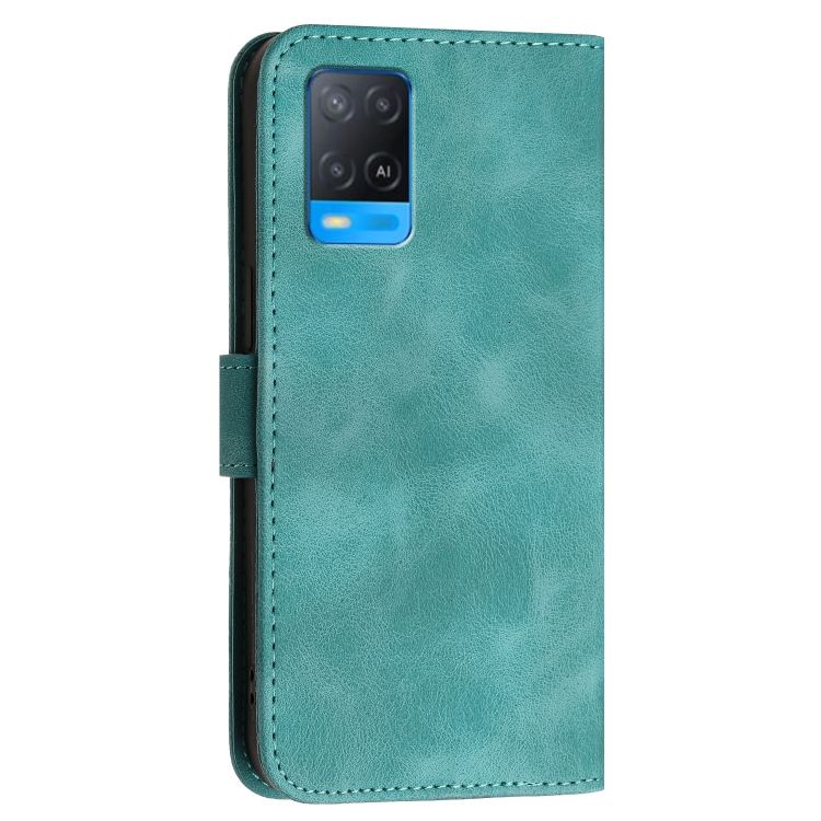 Funda de Cuero con Tapa y Cordón para Oppo A93 5G Yx0080 con Diseño En Relieve de Mariposa y Cuadrícula (Azul Claro)