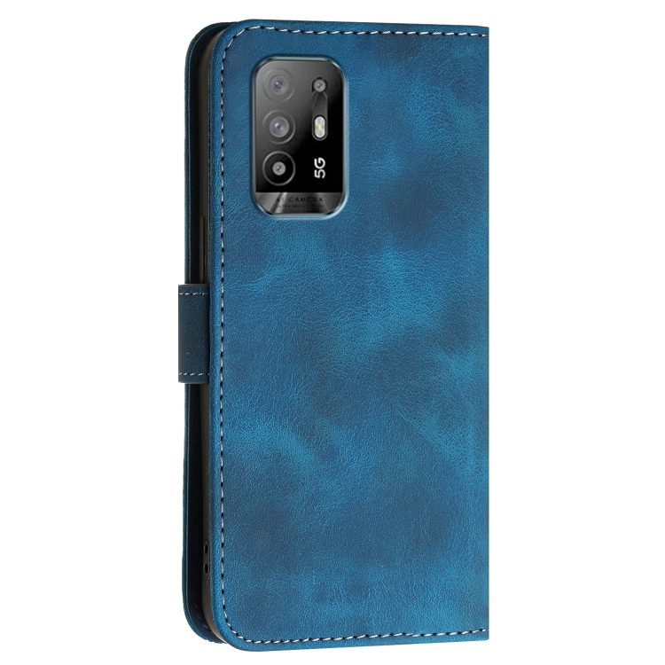 Funda de Cuero con Tapa y Cordón para Oppo A95 5G/Reno5 Z Yx0080 con Diseño En Relieve de Mariposa y Cuadrícula (Azul Oscuro)