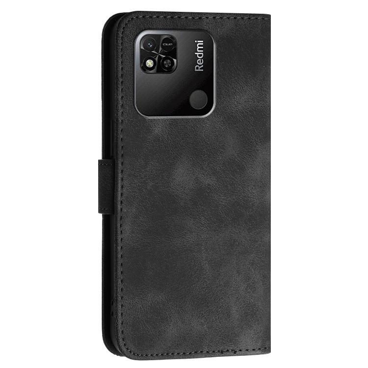 Funda de Cuero con Tapa y Cordón para Redmi 10A Yx0080 con Diseño de Mariposa En Relieve y Cuadrícula (Negro)