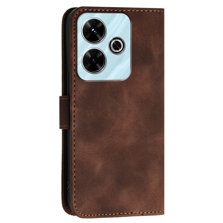 Funda de Cuero con Tapa y Cordón para Redmi 13 Yx0080 con Diseño En Relieve de Mariposa y Cuadrícula (Café)