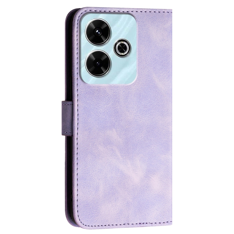 Funda de Cuero con Tapa y Cordón para Redmi 13 Yx0080 con Diseño En Relieve de Mariposa y Cuadrícula (Morado Claro)