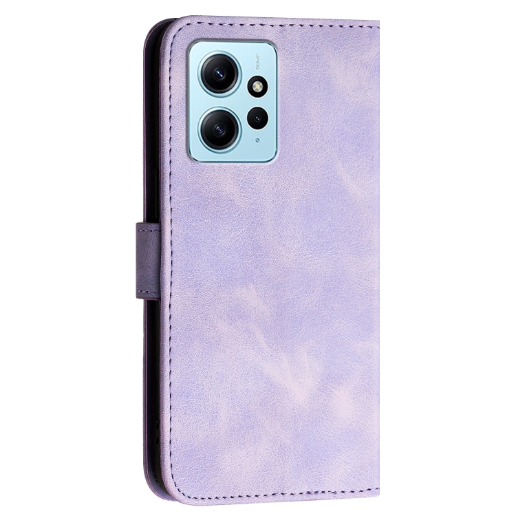 Funda de Cuero con Tapa y Cordón para Redmi Note 12 4G Yx0080 con Diseño de Mariposa En Relieve y Cuadrícula (Morado Claro)