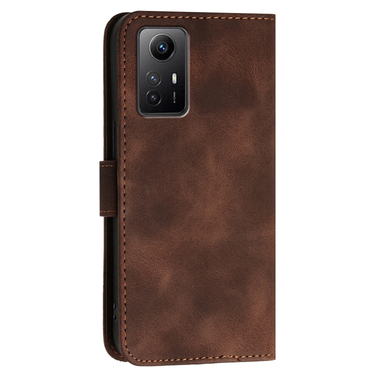 Funda de Cuero con Tapa y Cordón para Redmi Note 12S Yx0080 con Diseño En Relieve de Mariposa y Cuadrícula (Café)