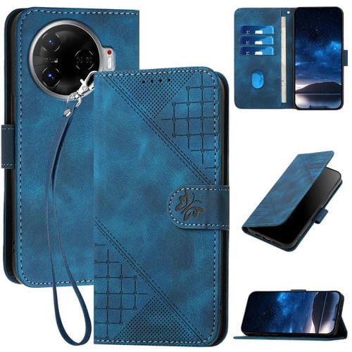 Funda de Cuero con Tapa y Cordón para Tecno Camon 30 Pro 5G Yx0080 (Azul Oscuro)