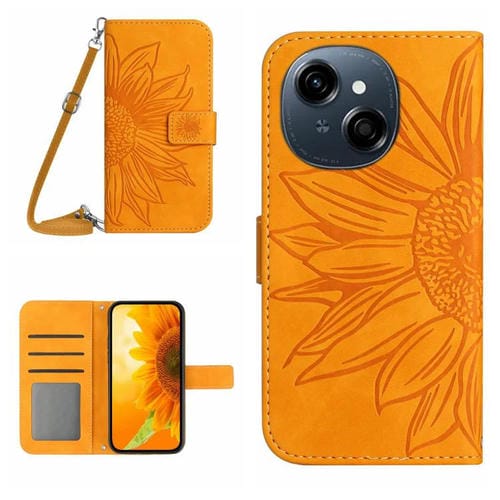 Funda de Cuero con Tapa y Cordón para Tecno Pop 9 4G y Spark Go 2025 4G (Amarillo)