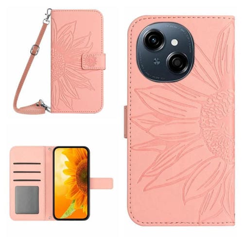 Funda de Cuero con Tapa y Cordón para Tecno Pop 9 4G y Spark Go 2025 4G (Rosa)
