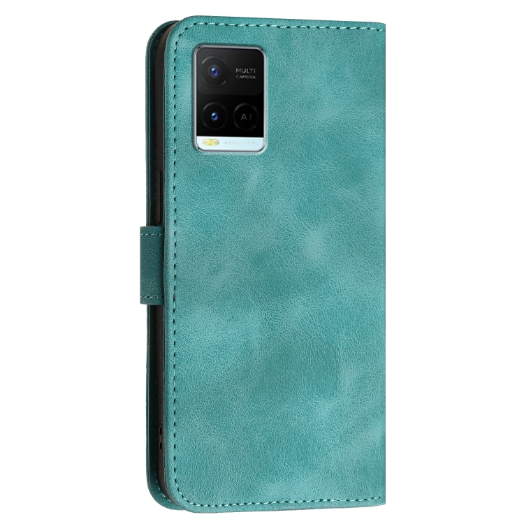 Funda de Cuero con Tapa y Cordón para Vivo Y33S 4G Global Yx0080 con Diseño En Relieve de Mariposa y Cuadrícula (Azul Claro)