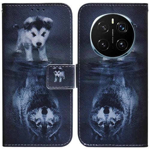 Funda de Cuero con Tapa para Honor Magic 7 Pro con Dibujo a Color (Lobo y Perro)