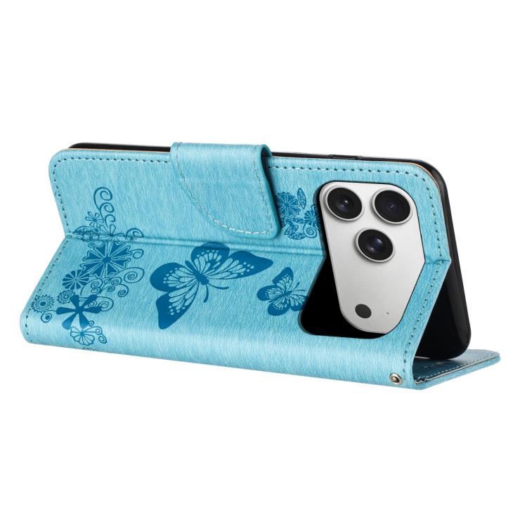 Funda de cuero con tapa y diseño de mariposa para iPhone 17 Pro (azul)