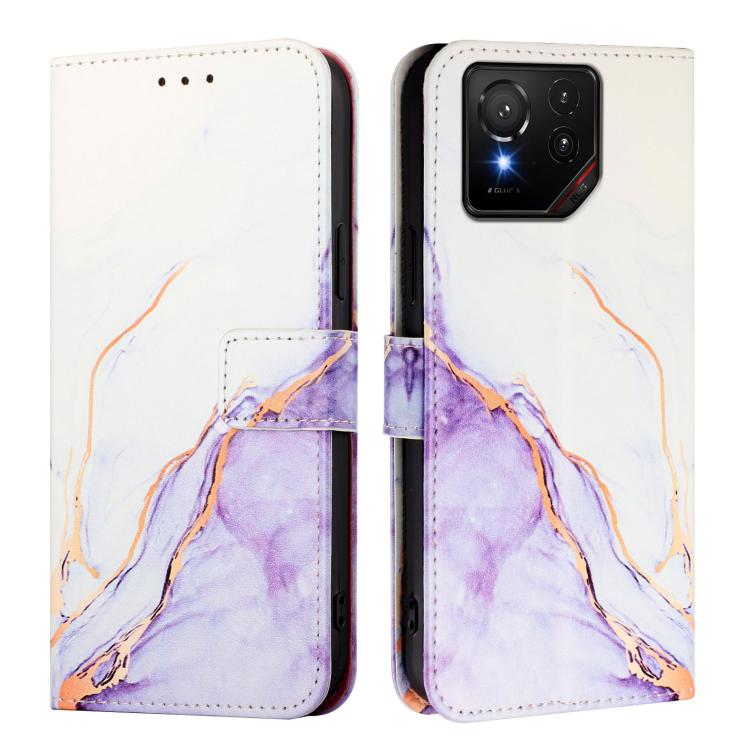 Funda de Cuero con Tapa y Diseño de Mármol para Asus Rog Phone 9/9 Pro Pt003 (Blanco y Morado)