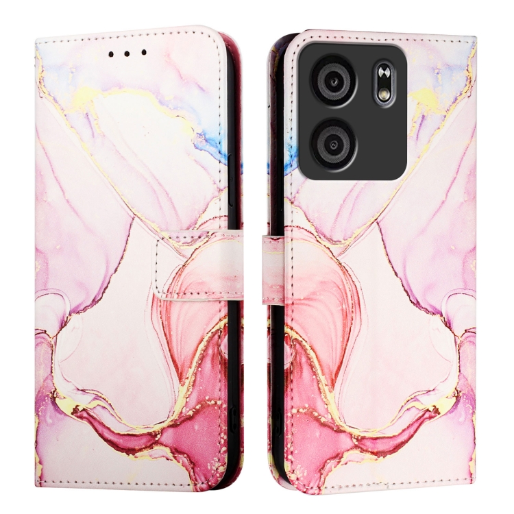 Funda de Cuero con Tapa para BLU View 5 Pt003 Diseño Mármol (Oro Rosa)